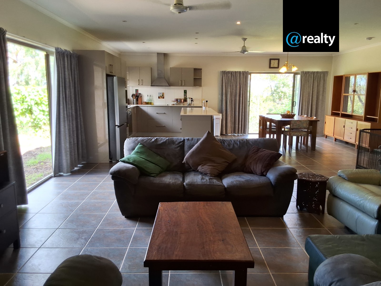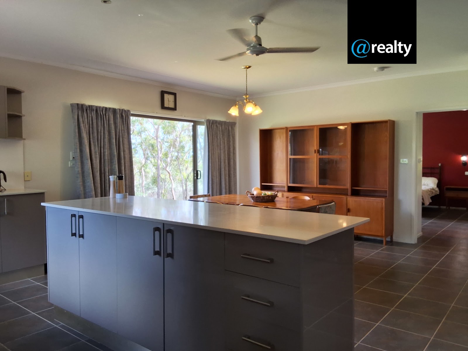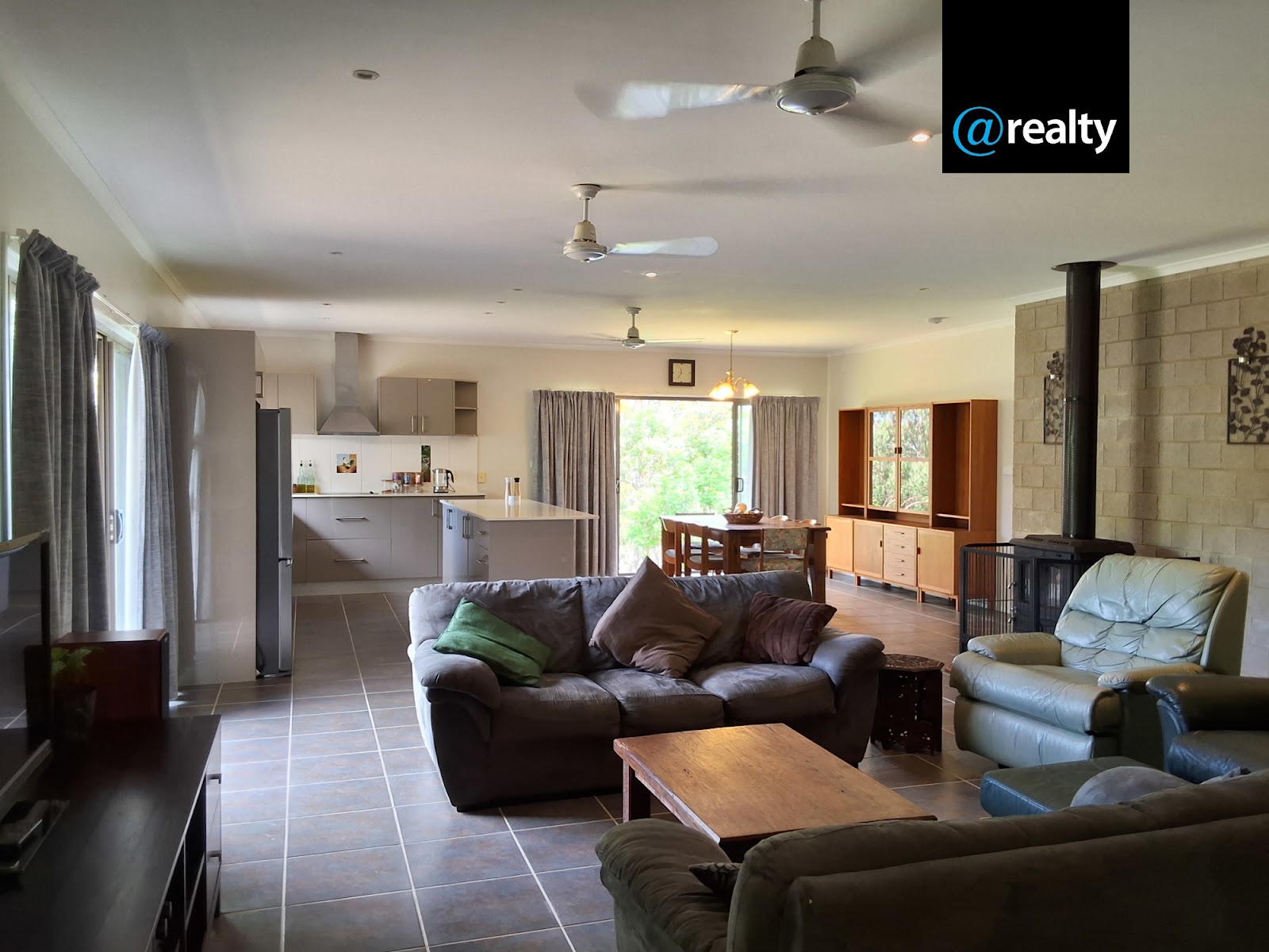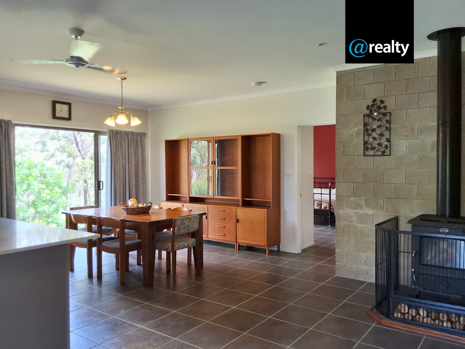 It has an open plan kitchen/dining area that opens up to the outside views of the Millstream hills through the double glass sliding doors. The loungeroom is warmed by the larger slow combustion fireplace in winter. There is a second family room for the larger family.